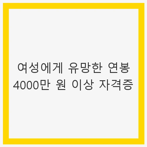 안녕하세요. 오늘은 많은 여성들이 궁금해하는 연봉 4000만 원 이상을 목표로 할 수 있는 자격증에 대해 이야기해보려 합니다. 현대 사회에서 여성의 사회적 역할이 커지면서, 전문성을 갖춘 경력직 여성에 대한 수요가 증가하고 있습니다. 이에 따라 특정 자격증을 통해 안정적인 일자리를 확보하고, 높은 연봉을 받을 수 있는 기회가 늘어나고 있습니다. 그럼 어떤 자격증이 유망한지 살펴보겠습니다.